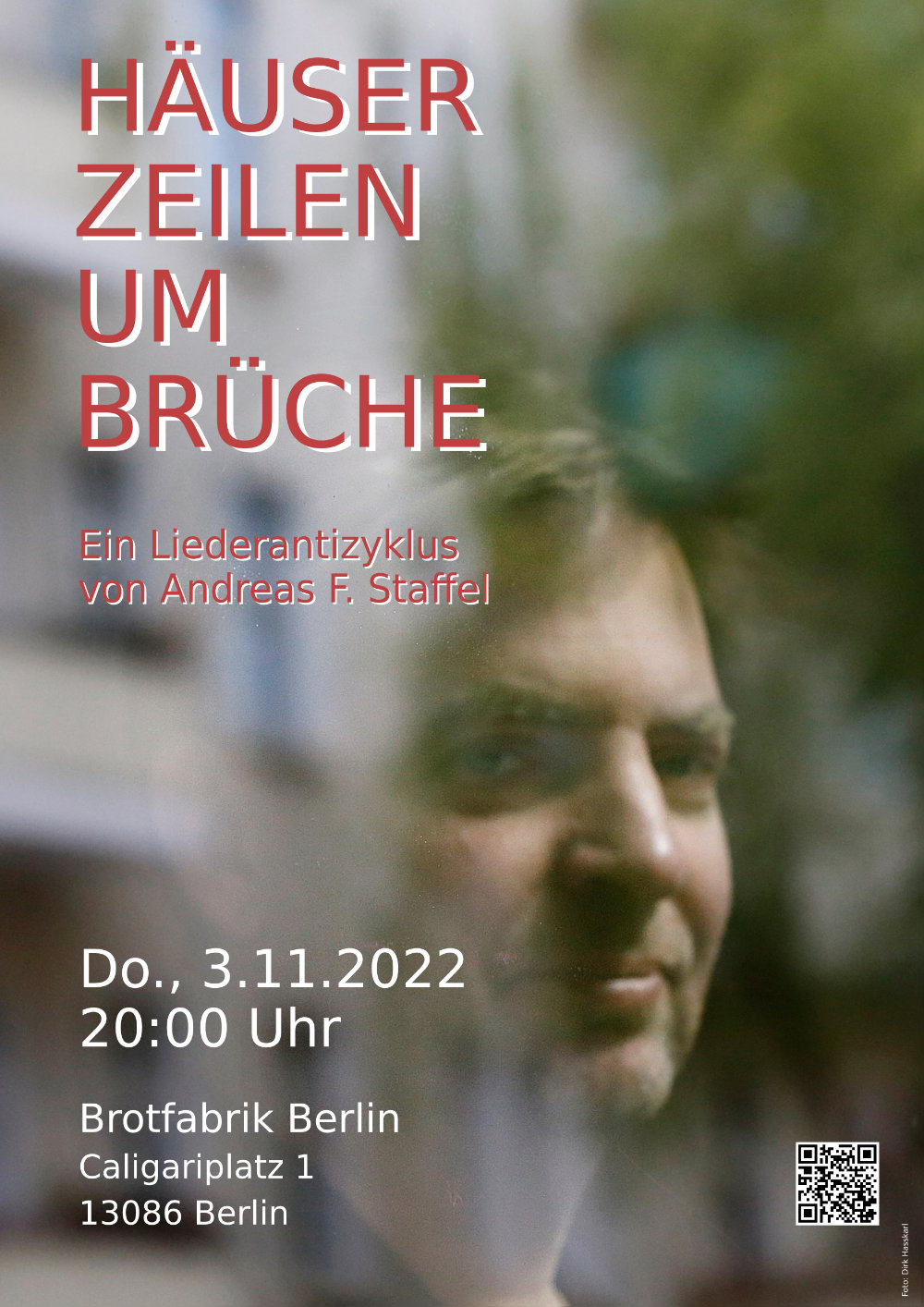 Liederantizyklus von Andreas F. Staffel für Sopran, Synthesizer, Zuspiel (Samples), Video und Tanz nach eigenen Texten und Gedichten. Uraufführung am 3.11.2022 in der Brotfabrik Berlin.